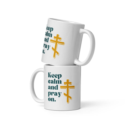 "Keep Calm and Pray On" Mug – Featuring Orthodox Cross